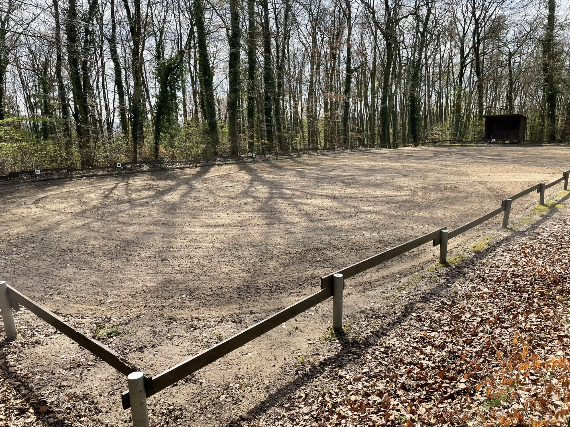 Der Hauptplatz hat eine Größe von 114 mal 135 Meter, der verschiedene feste Geländehindernisse, wie Wellenbahn, Gräben, Auf- und Absprünge, Coffin, Wasser etc. beinhaltet. Insgesamt etwa 25 Hindernisse im Niveau von Geländereiterprüfungen bis Klasse A. Nutzungszeitraum in der Regel April bis Oktober bzw. nach Absprache.